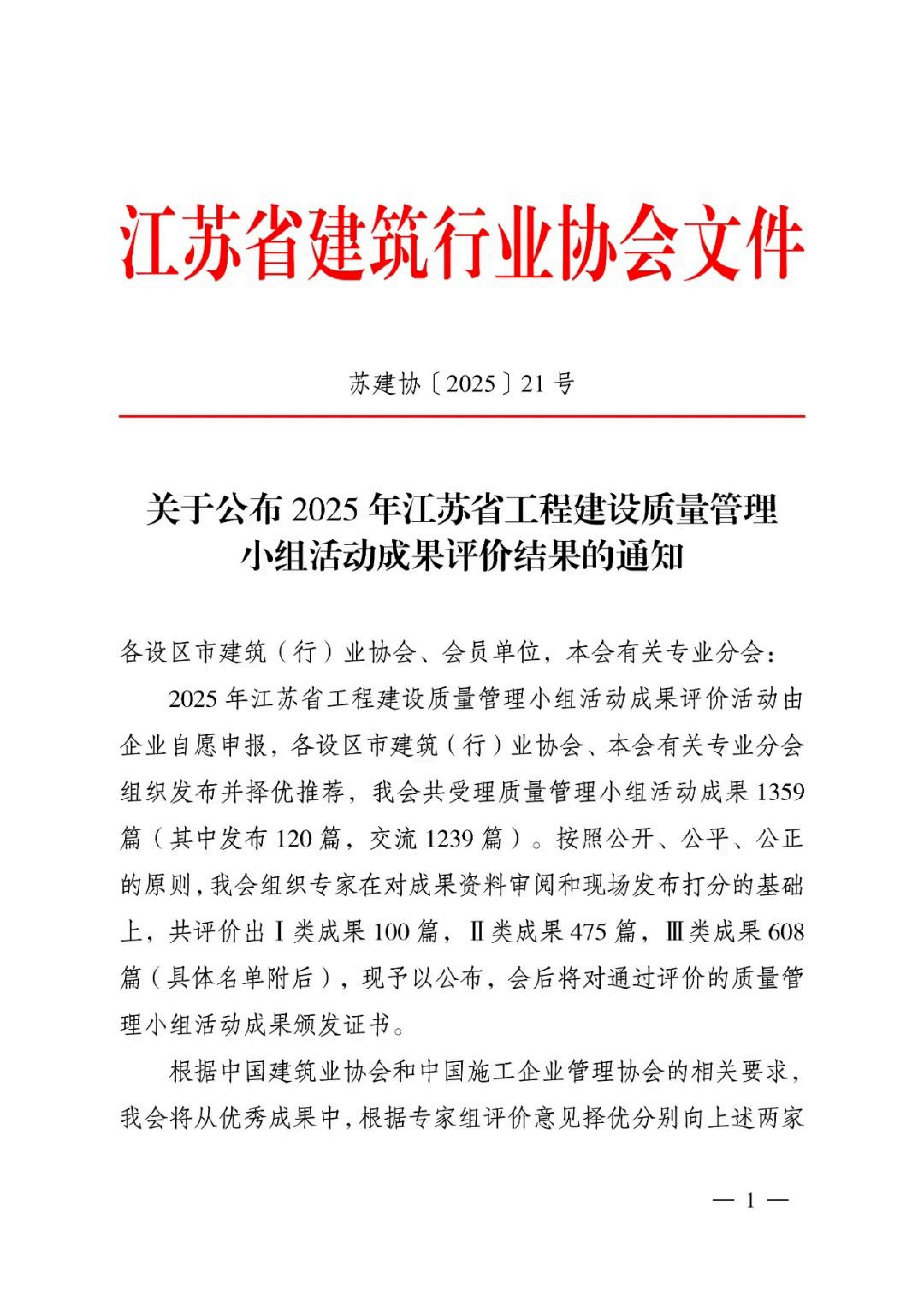 近日,从国家及省市级建筑业协会陆续传来喜讯:集团在2025年度累计荣获国家级、省级、市级QC(质量管理小组)成果34项,收获硕果累累,以卓越的创新实力和扎实的质量实践,交出了一份令人振奋的质量答卷!